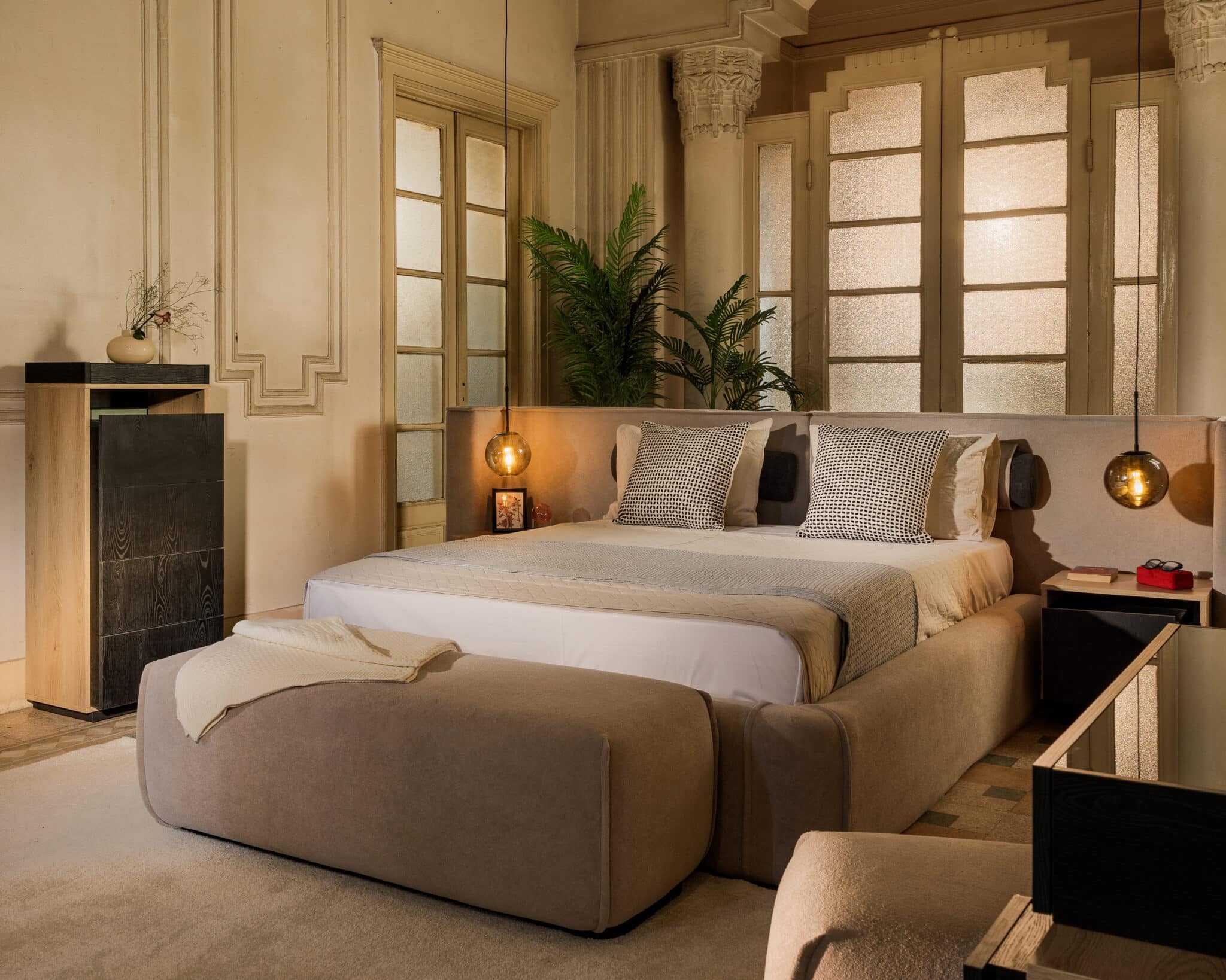AlRO, meaning ‘air’ in Arabic, reflects the lightness and fluidity of modern life, The collection features clean lines, minimalist forms, and a focus on functionality. The inspiration comes from the city’s dynamic energy, with its soaring highways and ever-present movement. Airo pieces utilize a palette of muted, earthy tones, reminiscent of the desert landscape, while touches of vibrant color pay homage to the city’s lively spirit.